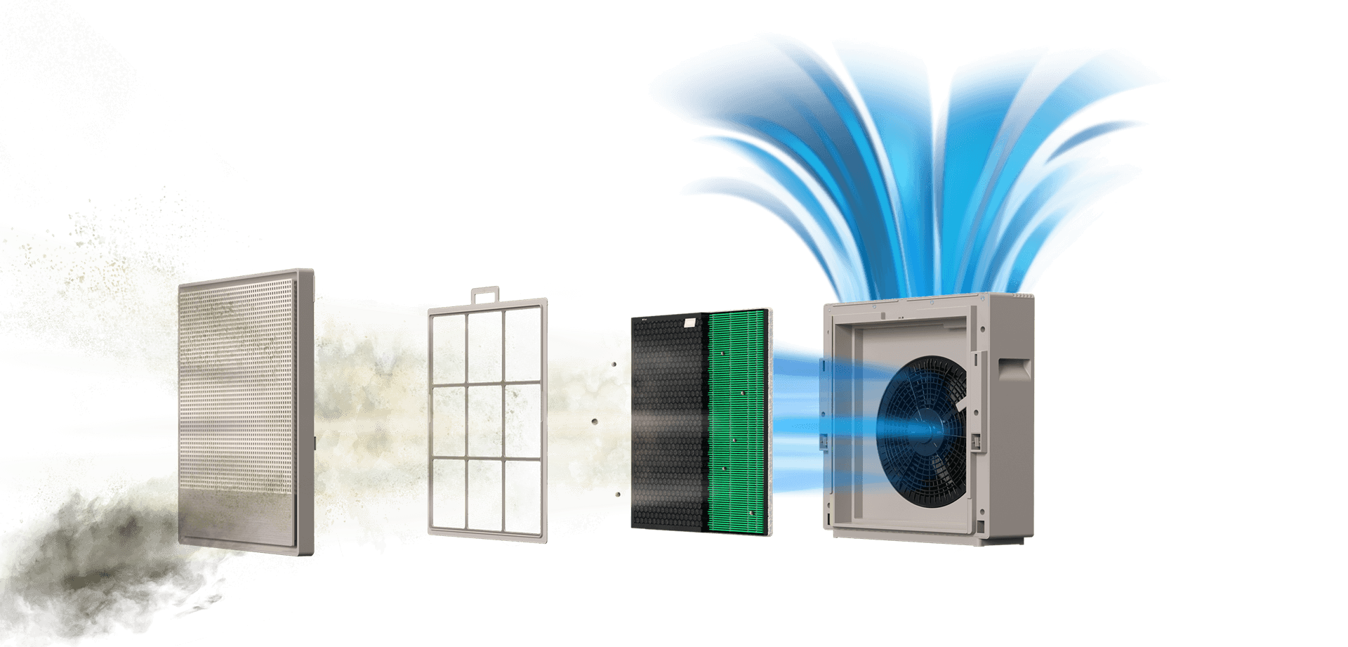 Kombinasjonen av flere filtre fjerner opptil 99,999 % av partikler