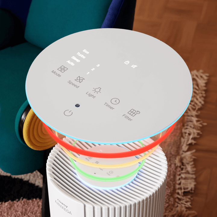 Fra automatisk modus til timer, nattlys, stille modus og barnesikring – Airmega er designet med hverdagen i tankene og gir enkel og intuitiv kontroll med ett trykk.