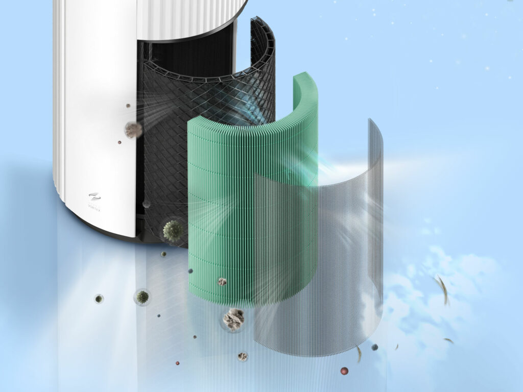 Avansert 3-trinns filtrering fanger opp 99,99 % av luftbårne forurensninger, fra støv til lukt
